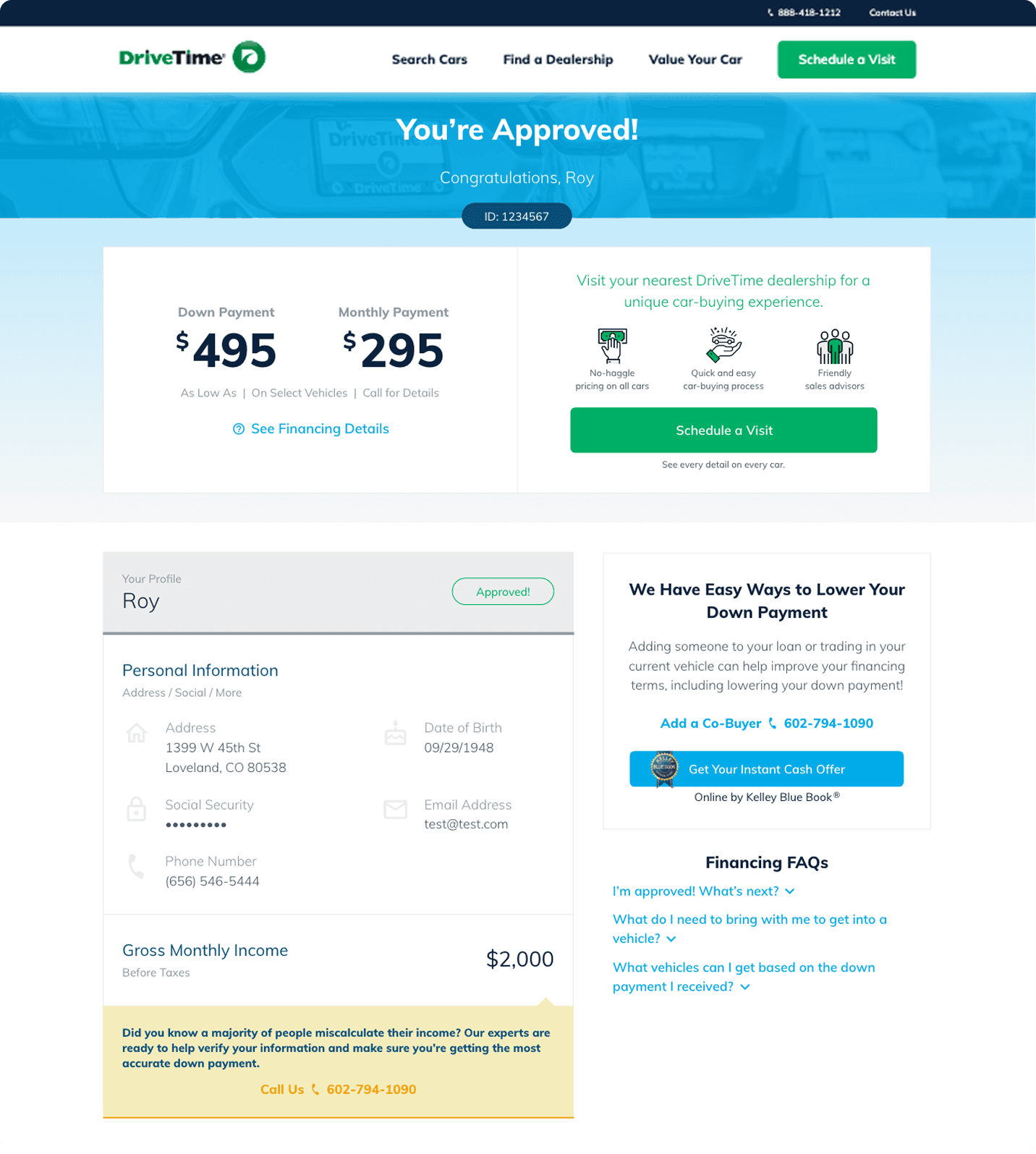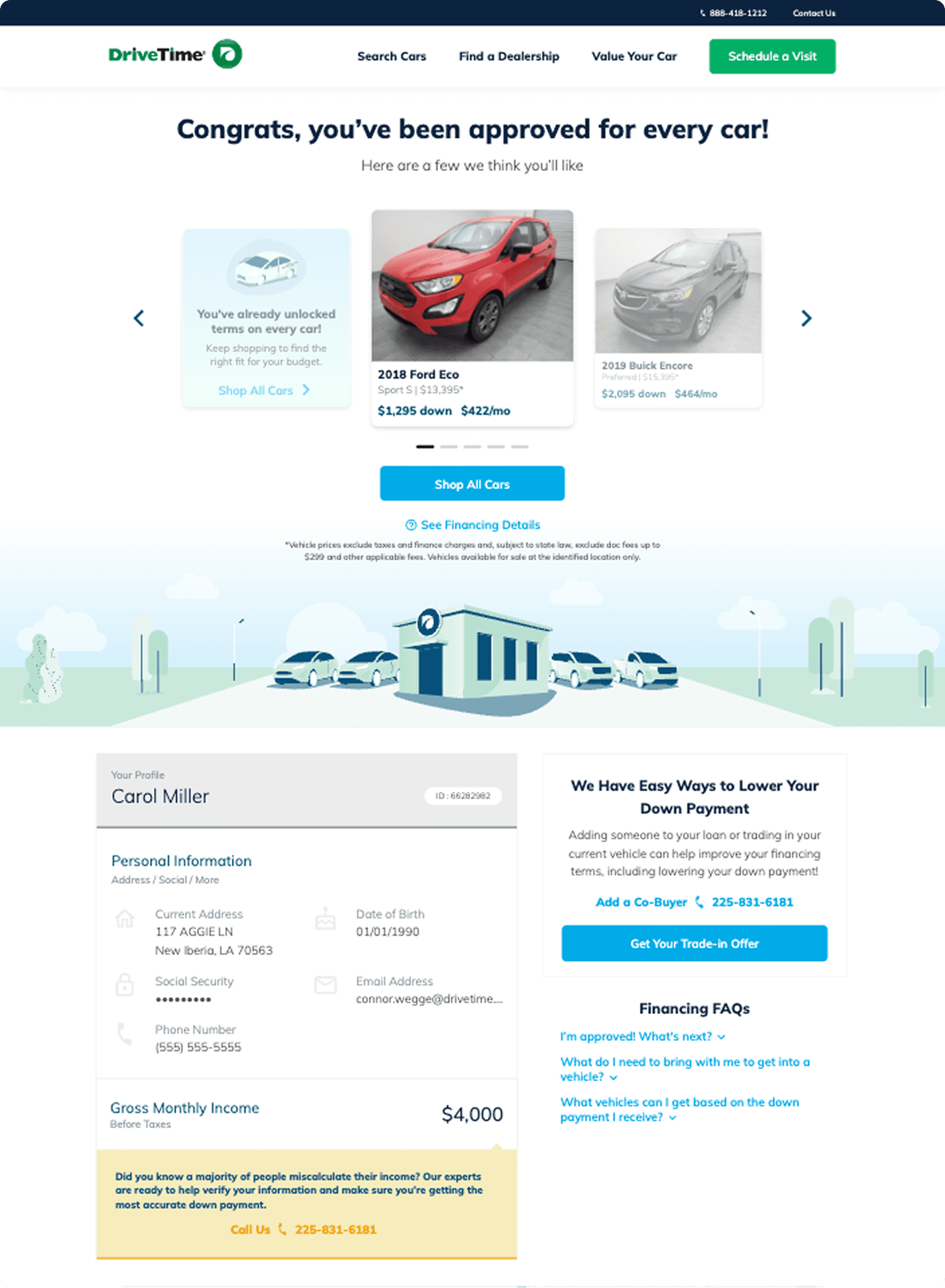 Redesigning the App Cert experience on DriveTime.com so a customer can see their personalized terms on every car.