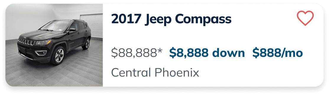 A single vehicle card on mobile was covering quite a bit of real estate, so it was decided by leadership that we kickoff a new experiment where we have a more compact version of this card. Our hypothesis: By showing customers more cars with terms at a time, we would increase the likelihood that customers will find cars <$1,500 down and click into VDP. This could increase our lead to sale numbers and the amount of VDP views that are occurring on mobile.