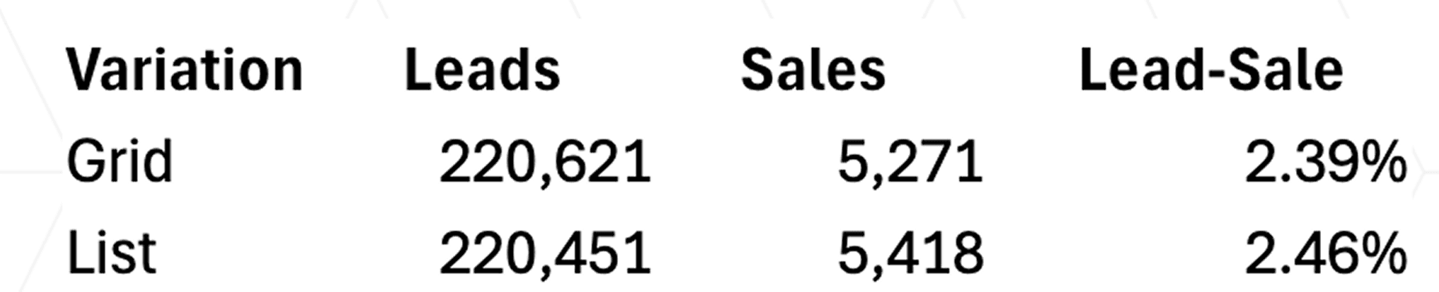 In a 14-day static pool comparison, List was performing better than Grid on a lead-sale basis.