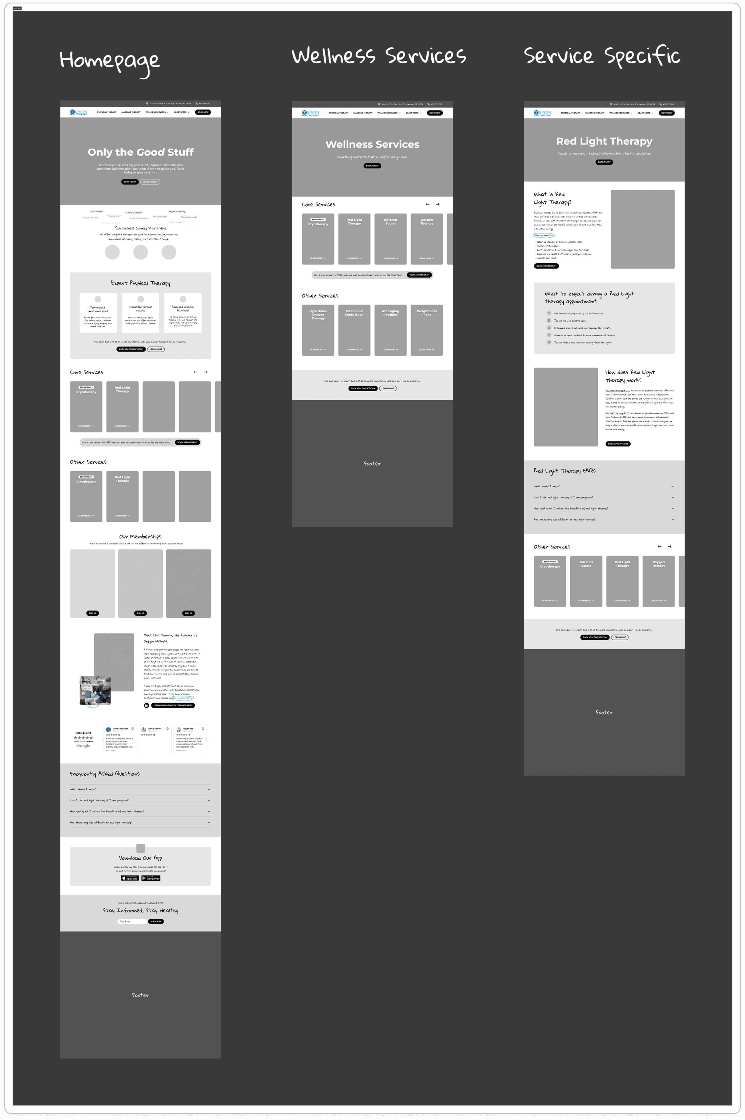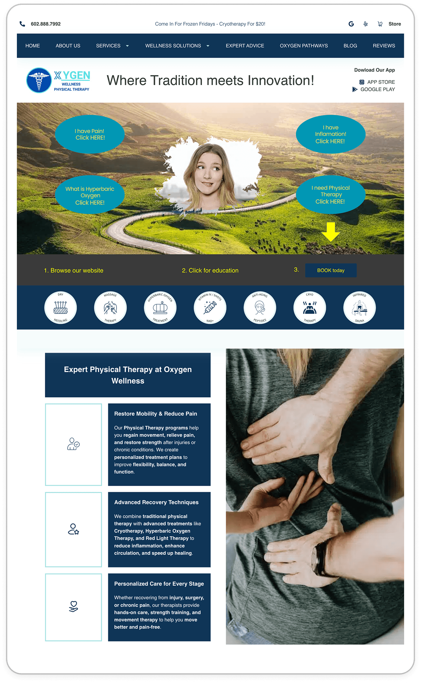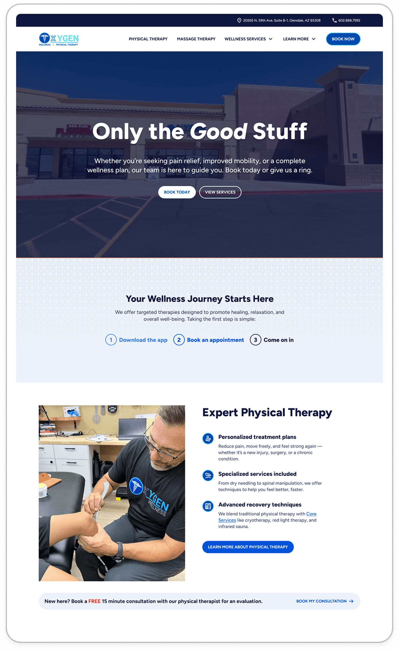 A BIG problem on this website was actually the photography. I knew this would be a driving force. As a client myself, I knew the first thing many people would wonder when coming across this website is: What does the place LOOK like? This includes services too. What are the vibes? What are people wearing? What does the physical therapist look like?