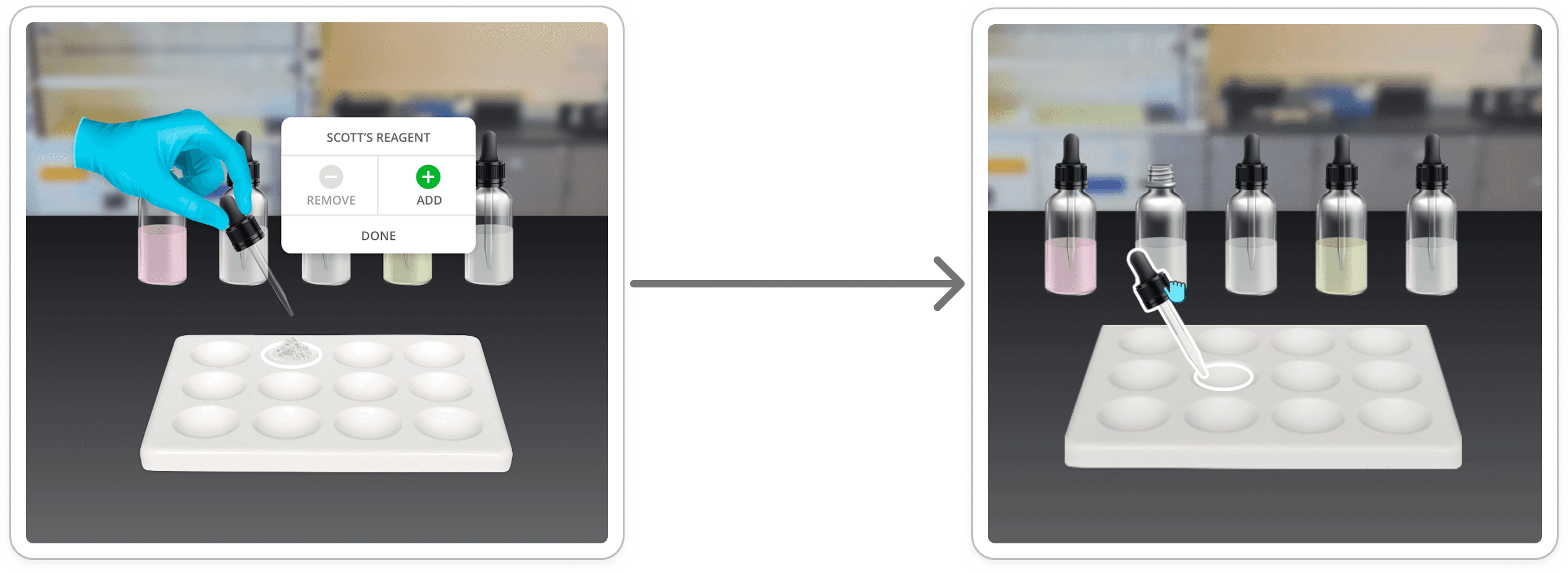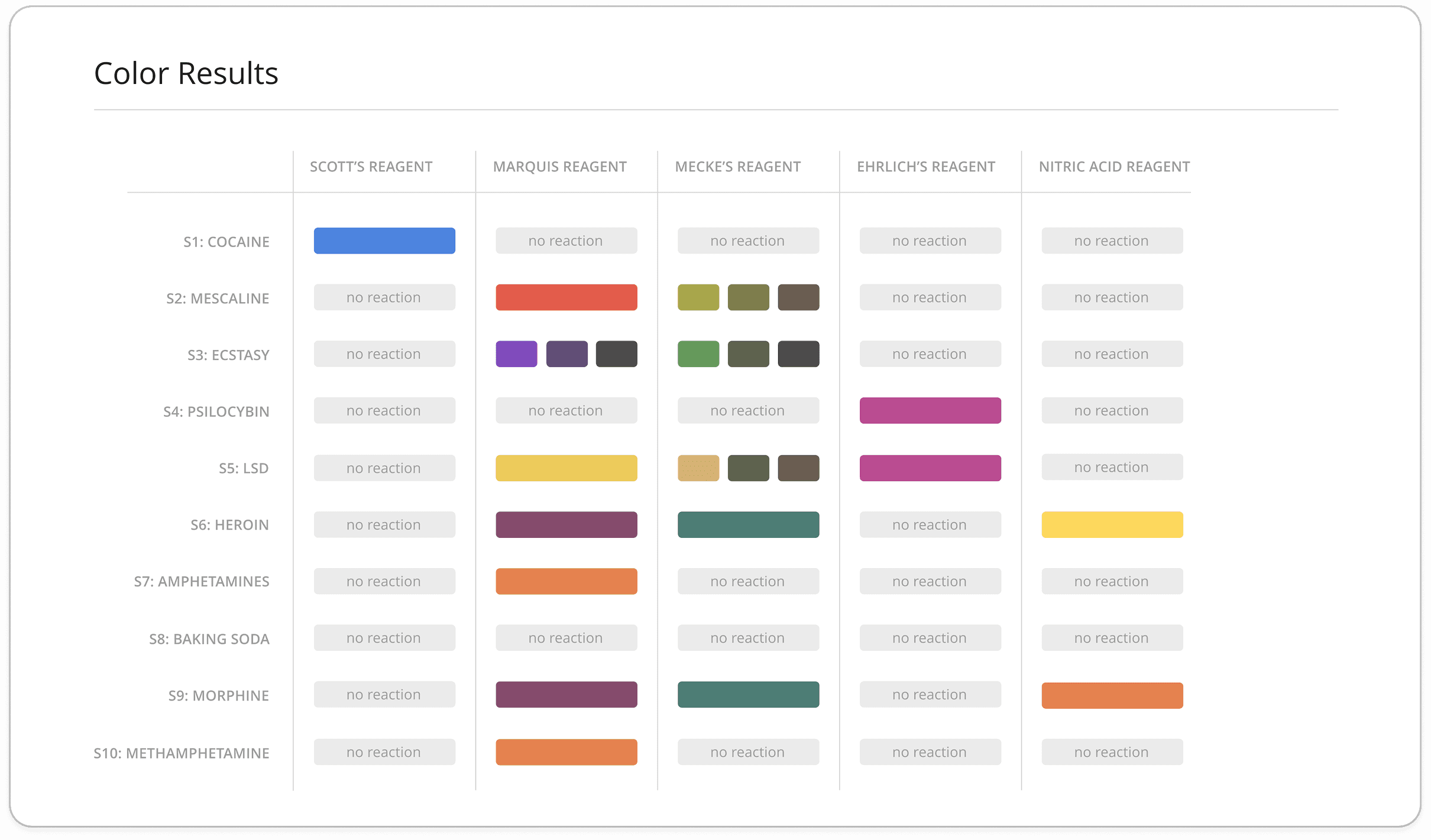 Students are able to see reactions between each drug and each reagent individually