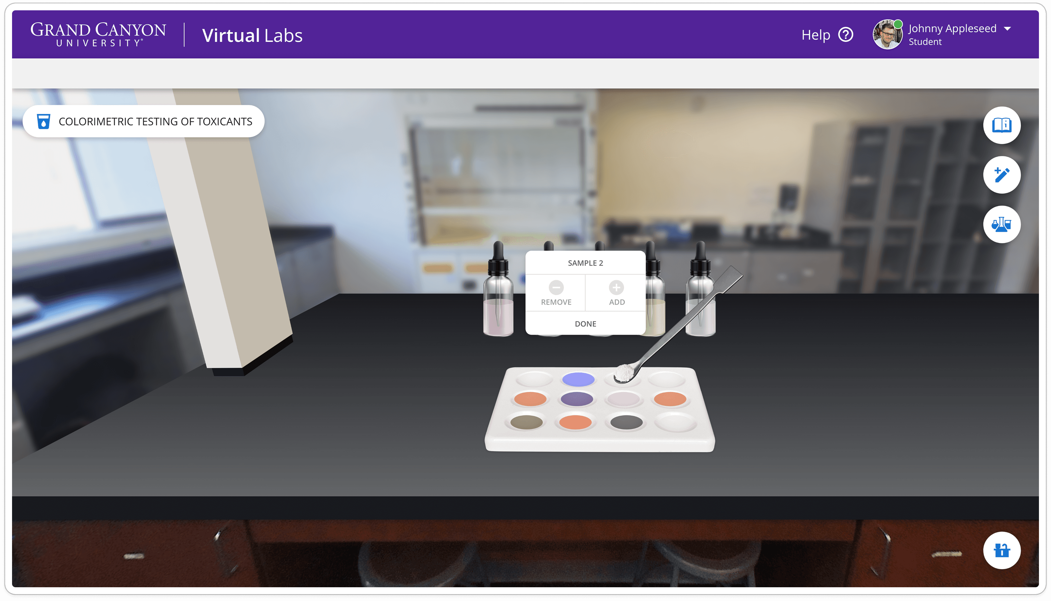 A virtual lab simulation for students.
