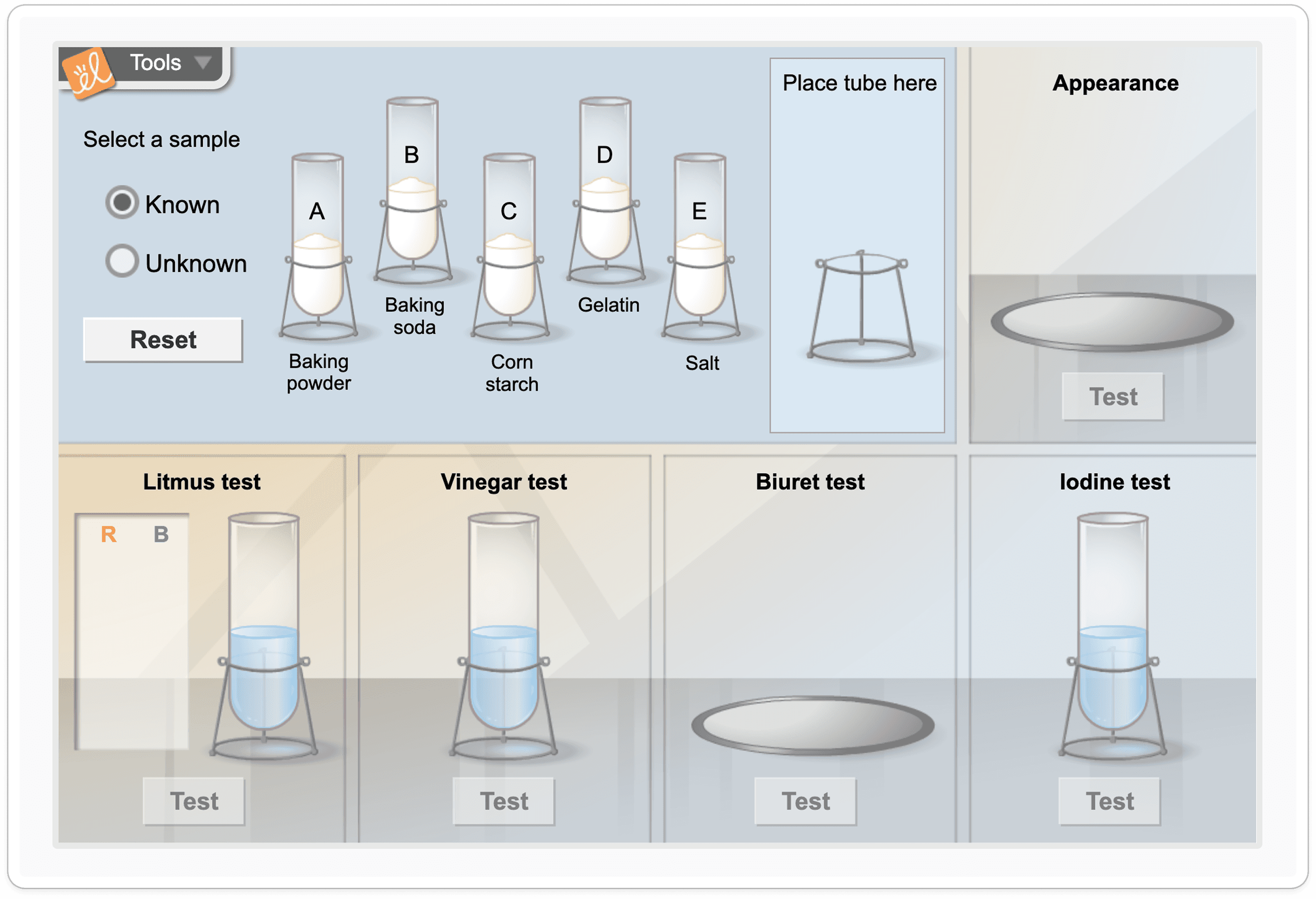 Students are able to choose the drug to test and the reagent to use at random